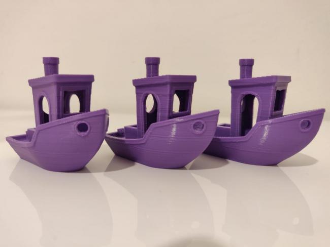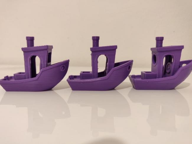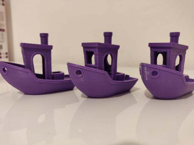 Il cubo è fatto con Cura. Le benchy sono, nell'ordine: Slic3r, Cura, S3D. Slic3r stampa meglio di Cura, stando alla benchy. S3D stampa meglio di tutti, ma considerato che Slic3r e Cura, a seconda della stampa, presentano lo stesso problema, S3D evidentemente stampa meglio la benchy ma prima o poi avrà gli stessi problemi degli altri due. Ovunque c'è una seam, lui lascia una sorta di "goccia", la quale si ripercuote per tutta la facciata, è come se i layer traslassero. Per me devo aumentare la velocità, ho come l'impressione che la "goccia" sia lasciata perchè non fa in tempo a spostarsi di layer.