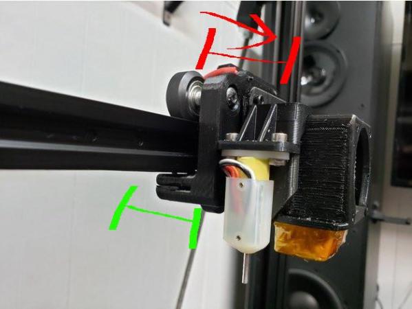 Non è un problema si posizione del carrello, a quanto pare. Altrimenti la cinghia si piegherebbe da entrambi i lati del carrello, non solo a sinistra. Ho provato a spostarla più indietro e non è cambiato nulla . Tra poco verifico l'allineamento del motore, magari l'ho rimontato male, dato che la cinghia è piegata solo lato motore e non lato puleggia