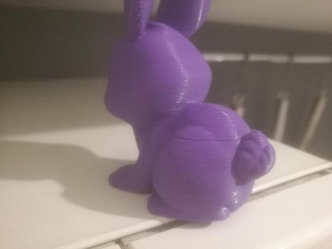 Quindi a livello di wobbing non cambia nulla 2 o 3 perimetri. Boh. Alzo le mani, sto stampando un coniglio ed i layer sono tutti incasinati. Appena ha finito rimetto su il tianse rosa e vediamo se stampa meglio. Se così fosse, questo PLA Amazon fa proprio cagare Però anche l'esun stampa a righe, ultimamente. Mi sembra molto strano che sia un problema di filo
