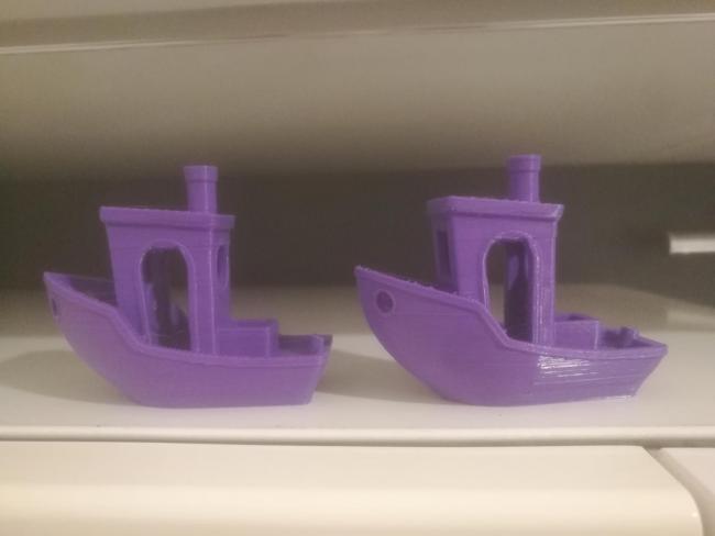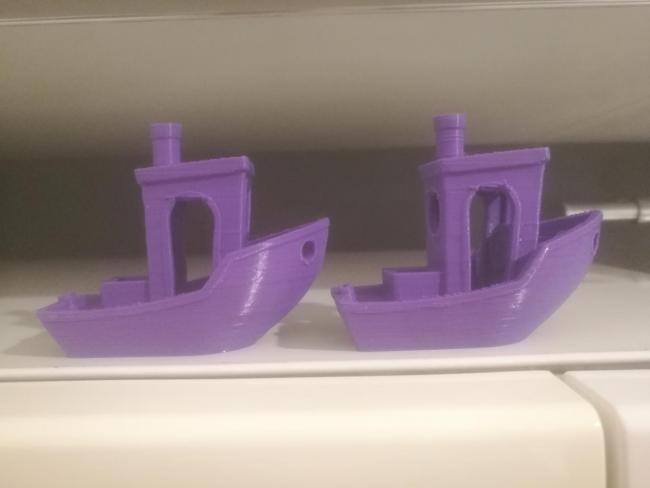 A sinistra, benchy con estrusore stock (clone Titan) a destra con estrusore clone bondtech fysetc (moooooooooooooooooooolto più silenzioso e fluido) Ma la barra Z non allineata, può portare a questi problemi? Se ci fate caso, le bande problematiche sono sempre nello stesso identico punto. Cambiando estrusore per intero, dubito di aver problemi si estrusione in egual misura sempre nello stesso punto. Così come escluderei il filamento, un filo non uniforme non può essere non uniforme nello stesso modo, nello stesso punto della stampa, quindi il filo non è al 100%