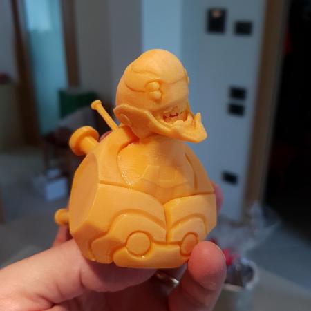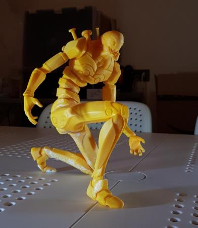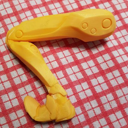 È un PETG venduto da Amazon, è marchiato Amazon basics. Ho voluto provare ad usarlo a 230 gradi ma sembra, da altre prove fatte, che 235 sia meglio. Allego foto della gamba ristampata e carteggiata. Si vede ancora qualche trasparenza anche se ho usato 5 layer di top e bottom. Ma capita solo con questo particolare modello. Probabilmente ha una topologia che mette in crisi lo slicer ed esce quel che esce. Ho provato anche a tagliare il pezzo con un piano e fare fronte retro in modo da non dover usare i supporti ma dalla preview si creano ancora più problemi. Andrò avanti così con questo modello, che non avevo certo progettato per la stampa 3d al tempo. Poi cercherò di essere più accorto nella progettazione.