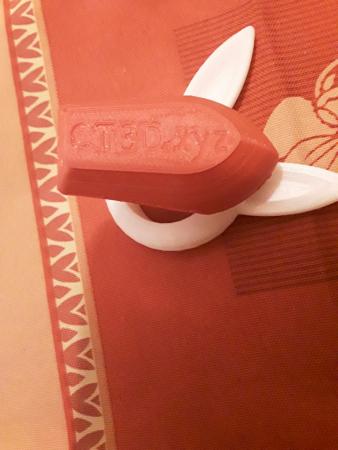 Stampo con filamento rosso da 1,75 della tianse ad una temperatura di estensione di 200 gradi e piatto a 50