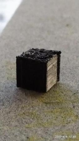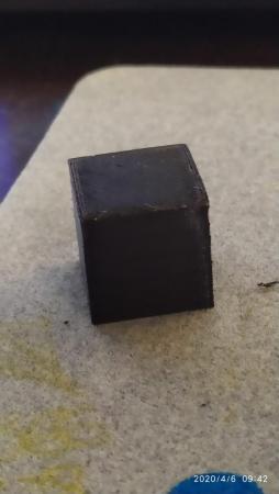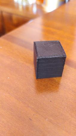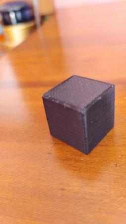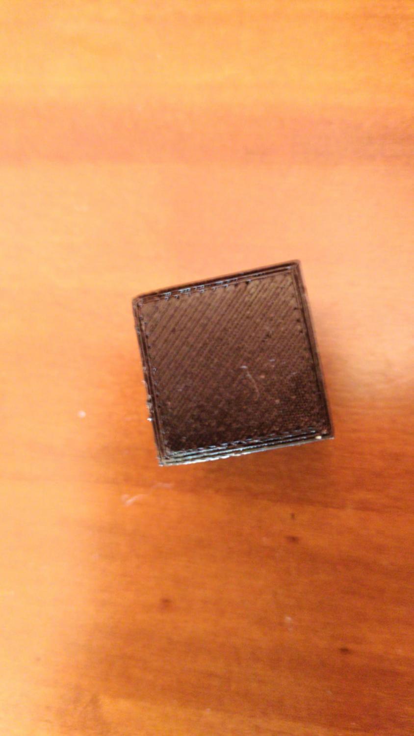 penso di essere arrivato ad un buon punto , ho stampato un cubo da 20mm x 20mm, ha rispettato le misure , solo un piccolo problema (penso) dalla parte inferiore dove poggia sul piatto noto un piccolissimo difetto, può essere la temperarure del piatto? temperatura piatto 50, temperatura estrusore 210