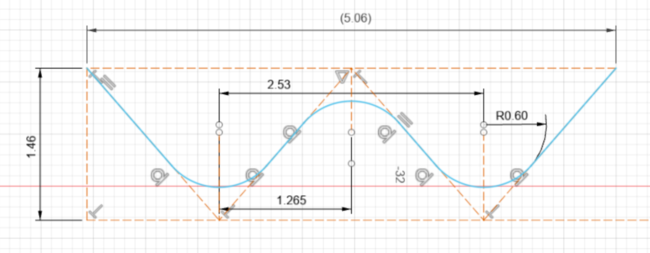 Ciao a tutti, mi aiutereste per favore? Dovrei disegnare con fusion delle onduline, ho il disegno con le misure reali e dovrei riportarle in scala 1:35, ho iniziato a disegnare ma mi perdo potreste aiutarmi a capire come andare avanti? Le linee di costruzione su fusion sono le dimensioni in scala, ho disegnato dei triangoli, dopo ho usato la funzione raccordo per dare la curvatura, non so ricavare il raggio corretto, quindi spero che 0.6mm vada bene. Il mio problema è che dando la curvatura l'altezza diminuisce, come evito questo? Grazie -