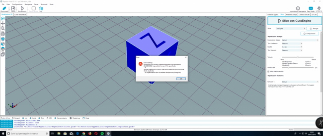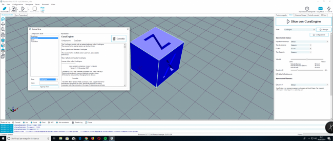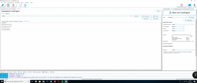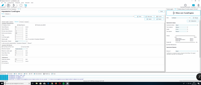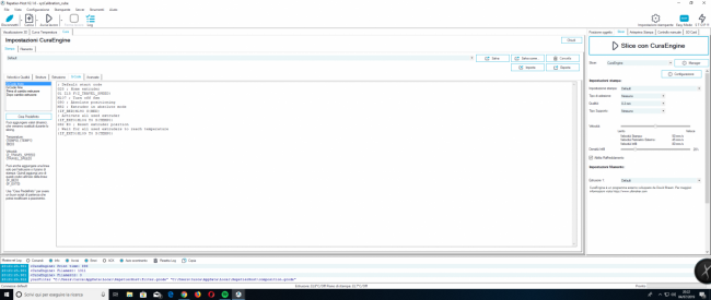 Salve a tutti,dopo aver lavorato di molto sul firmware della stampante per centrare assi etc (avevo già messo un post sui finecorsa) e sistemato problemi,tipo estrusore occluso dal tubetto montato alla pene di segugio dai cinesi,sono riuscito a far estrudere la stampante manualmente con un nozzle da 0.4 e tutti gli assi funzionano correttamente,sia gli endstop di min e max. Ho dovuto studiarmi e modificare bene il firmware per mettere a punto la stampante. Ho scaricato un cubetto di prova,per intenderci quello con le facce con la scritta x y z con la misura 20x20. Avvio l'host repetier (che avevo anche disinstallato e reinstallato) e ogni volta che faccio avvia lavoro,dopo 1 secondo mi dice stampa completata. Lo slicer installato è il cura engine che è di serie sull'host repetier. Vedo che non genera il gcode,ho provato anche metterlo nella scheda sd e farlo partire direttamente da stampante ma non mi riconosce il cubetto. Vi mando le foto,forse mi è sfuggito qualcosa di come si usa l'host repetier. La stampante è una flsun l3 (penso sia una imitazione della prusa l3) con piatto da 310mm x 310mm ma si può stampare effettivamente a 300x300x400/420) con firmware marlin 1.1.2. Vorrei riuscire a fare la stampa di prova ma non riesco a farla partire,specialmente farla stampare da sd così da staccare il pc. Grazie a tutti. inoltre nella schermata di slicing mi da errore,non genera il gcode,che se non sbaglio,è quello che poi va ad attuare i mivimenti della stampante per fare la stampa vera e propria,ho capito bene o sono fuori strada? Ora devo uscire perchè devo incontrarmi con un amico,più tardi guardo se qualcuno mi ha cortesemente risposto -