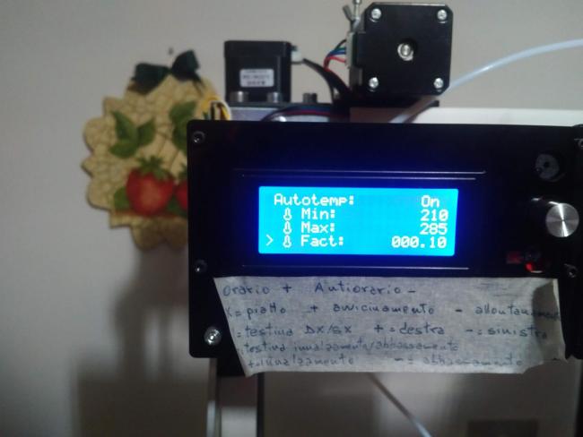 fatto,sono riuscito a fare la mia prima stampa che è venuta decente ma la temperatura di estrusione non è coerente,ho dovuto smontare l'estrusore diverse volte -