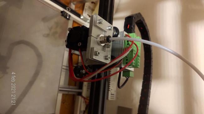 fatto.Ho cominciato ma ho problemi con l'estrusore,penso abbia un piccolo difetto nella boccola che porta il filo al beccuccio di ottone -
