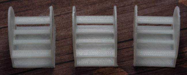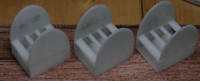 Tempo di stampa identico, quella complessivamente piú pulita, soprattutto per i ponti, mi sembra la S3D, ha anche generato pochissimi fili.. anche la faccia alta della base e le facce alte dei ponti mi sembrano piú puliti.