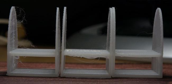 Con Cura le facce verticali ovali sono senz'altro le migliori, si vede molto bene in foto, il fondo dei ponti lasciano molto a desiderare, ha generato pochissimi fili.