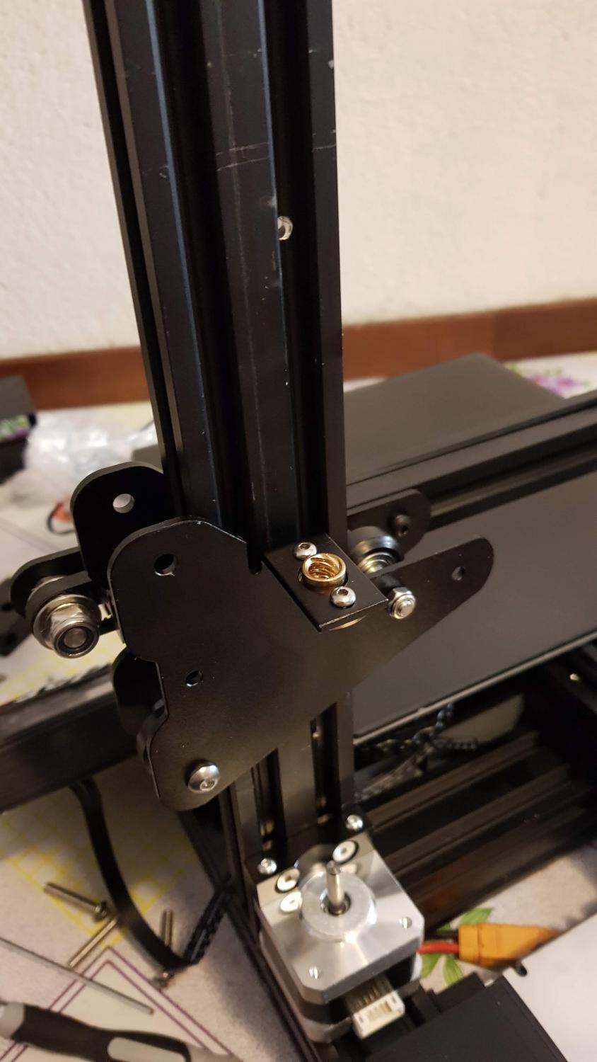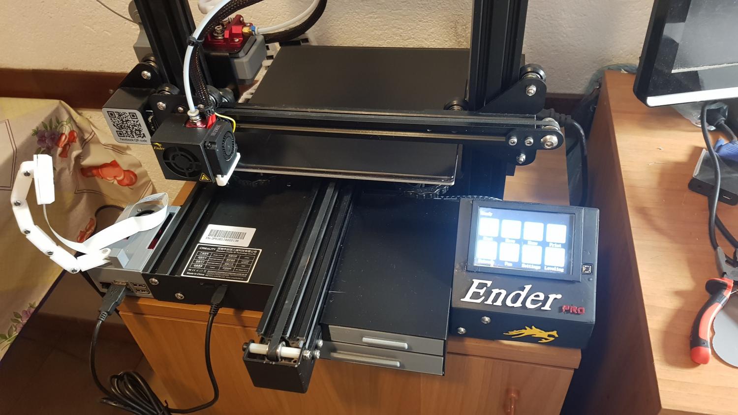 Ciao a Tutti. Ieri è arrivato il Kit che avevo ordinato per sdoppiare il motore dell'asse Z sulla mia Ender 3 Pro. Con il tempo (ed usura dei cuscinetti in gomma) l'asse Z della mia stampante NON è più lineare, cioè il lato dove NON c'è il motore è meno reattivo allo spostamento, anche lavorando sulla taratura dei cuscinetti stessi di scorrimento. Ho comprato su Aliexpress un Kit per sdoppiare il suddetto asse. Ci sono 2 filosofie: 1) puramente meccanica, cioè 'trasportare' il movimento meccanico della vite collegata al motore sull'altro lato tramite una cinghia e delle pulegge con ulteriore vite filettata 2) Elettronica, comprensivo di un nuovo motore con sdoppiamento elettrico dei comandi del driver (cavetto con un connettore alla scheda madre e 2 connettori x motori. Ogni scelta ha i pro e contro, non esiste una soluzione che predomina sull'altra, personalmente ho scelto quella con motore aggiuntivo anche per compattezza e 'Pulizia'. Primo problema: Per mettere il doppio motore, occorre smontare e ricollocare l'alimentatore in quanto quest'ultimo occupa la posizione dove andrà il Kit, visto che voglio mantenere un aspetto 'Compatto' della stampate senza avere parti 'staccate', ho scelto la soluzione di posizionarlo in orizzontale nella parte posteriore della stampante sotto il motore dell'Asse Y. (esistono varie soluzioni....a voi la scelta) Per l'occasione, prima di procedere ho provveduto a stamparti i supporti di fissaggio comprensivo di staffa per fissare la presa di corrente ed interruttore di accensione. Il file stampabile è disponibile su :https://www.thingiverse.com/thing:3808088 Mi appresto ad iniziare l'upgrade (ricordarsi di fare sempre prima delle foto dettagliate....): Rimosso l'alimentatore dalla sua posizione iniziale, rimuovo la scatola in plastica e scollego i cavi che alimentato il PSU, smonto anche il connettore di alimentazione compresivo di interrutore. Inizio la prima trasformazione... proseguo nel montare i supporti sul PDU: P.S. le istruzioni per il montaggio sono anche disponibili sul progetto presente su Thingiverse. 1 Operazione di trasformazione conclusa. Nell'inserire l'alimentatore nella nuova posizione, fate sempre MOLTA attenzione ai cavi che alimentano il motore dell'asse z. (c'e il pericolo che vengano pizzicati....) Avendo liberato lo spazio dove alloggerà il secondo motore, mi appresto a montare il Kit. Il fissaggio del motore è semplicissimo e non ha bisogno di spiegazioni. La staffa di supporto ai 3 cuscinetti, dovrà essere completamente smontata e staccata dalla braccio orizzontale in quanto le viti di fissaggio dovranno essere cambiate con viti più lunghe che supportano i distanziali sia da un lato che dall'altro del cuscinetto. Dopo un po di tentativi....riesco a fissare il tutto...(per prima cosa va rimontato il cuscinetto interno con la regolazione e fissare il supporto alla barra orizzontale) poi procedere al montaggio dei 2 cuscinetti esterni. Una volta fissato il tutto, prima di procedere al montaggio della vite filettata provvedo a sostituire il collegamento elettrico per portare il doppio comando ad entrambe i motori dell'asse Z: Ricordarsi di avere delle fascette Auto-stringenti di ricambio in quanto quelle presenti dovranno essere tagliate per sfilare il vecchio cablaggio a singolo motore). Richiuso il tutto, provvedo a dare alimentazione, per vedere che i motori girino nello stesso verso..... Purtroppo mi è capitato che il nuovo motore girava in senso contrario all'esistente pertanto ho dovuto 'GIRARE' in senso speculare il collegamenti nel connettore (cosa segnalata più volte al costruttore...) Mi appresto ad installare la vite filettata al motore tramite apposito fermo e calibrare, tramite Calibro la stessa altezza dell'asse z da ambo il lati girando a mano il motore (con stampante spenta). Dato alimentazione e fatto alzare più volte l' asse (controllando relativa altezza...deve rimanere uguale da ambo i lati) e tarato il piatto....mi appresto ad effettuare una stampa di prova.... Lavoro finito si presenta così: P.S. nella foto la barra che sostiene il dato di scorrimento è storta, ho dovuto raddrizzarla successivamente. (molto probabilmente ha preso qualche colpo durante il trasporto....il pacco da un lato era schiacciato...) Un saluto a tutti.