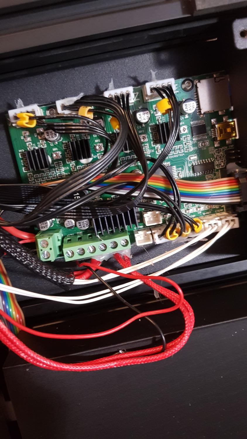 Salve a tutti. Finalmente dopo circa un mese e mezzo, è arrivata la scheda 'BIGTREETECH SKR mini E3 32Bit Control Board+TFT35 V2.0 With TMC2209' comprata su Aliexpress. Prima di iniziare di buttarmi nell'avventura di smontare la mia stampantina Ender 3 Pro, ho provveduto a stamparmi lo Chassis per Display preso da: Thingiverse : https://www.thingiverse.com/thing:3831726 P.S. l'ho personalizzato con la scritta Ender ed il logo di fabbrica....e dato una buona mano di vernice. Capovolgo la stampante e mi appresto a svitare le 3 viti del fissaggio, ricordarsi che c'è anche una vite sotto il piatto. Una volta svitato il tutto, rimuovere il coperchio con attenzione in quanto la ventola di raffreddamento fissata a quest'ultimo è collegata alla motherboard. (la Ventola sarà la prima ad essere scollegata....per non avere il coperchio d'intralcio...) ATTENZIONE: Prima di sconnettere qualsiasi connettore, occorre rimuovere la 'Colla' da quest'ultimi con un cacciavite o la tronchesina facendo MOLTA attenzione a non danneggiare ne connettori e ne fili. (Personalmente, prima di procedere ho eseguito delle foto dettagliate per vedere la disposizione dei vari cavi....anche se mi sono stampato tutte le connettorizzazioni dia scheda originale e sia quella della Mini E3). P.S. procurarsi anche delle fascette di plastica autobloccanti, in quanto quelle presenti dovranno essere tagliate per poter operare al meglio. Piano piano, inizio a staccare i vari cavetti iniziando dall'alimentazione, Fan e Bed e ricollegandoli alla nuova piastra (sono cavetti abbastanza spessi pertanto dovranno essere i primi ad essere spostati,...) Subito dopo procedo con lo spostamento dei connettori riguardanti i motori ed i relativi fine corsa. (Qui è difficile sbagliarsi in quanto sono presenti delle serigrafie sulla piastra che indicano le connettorizzazioni) La scheda può essere connessa con il display di serie originale (se non si è interessati a quello Touch).... Una volta liberata la scheda originale, ci sono 4 viti di fissaggio, che devono essere svitate ed un a volta rimossa, si può procedere con il fissaggio della nuova scheda, i fori e dimensioni sono identici. ATTENZIONE la ventola per il raffreddamento della Motheroard (quella attaccata al coperchio) DEVE essere collegata sul connettore FAN1 e quella invece del raffreddamento del PLA al FAN0 (nella foto precedente filo giallo e BLU è errata....) Prima di richiudere il tutto, ho dato alimentazione per vedere se la stampante rispondeva a tutti i comandi... Trasformazione Avvenuta....provata anche con Octoprint...tutto OK NON ho dovuto caricare nessun firmware in quanto la scheda è arrivata con l'ultimo firmware installato verificato in rete: https://github.com/bigtreetech Ora sto procedendo a testare il tutto con delle stampe di prova...salta subito all'occhio...pardon all'orecchio la SILENZIOSITA dei motori...sembra quasi che sia spenta.... Penso e spero che questa piccola guida possa essere di aiuto a qualcuno che ha in procinto di aggiornare la Ender 3 pro. Ciao a Tutti -