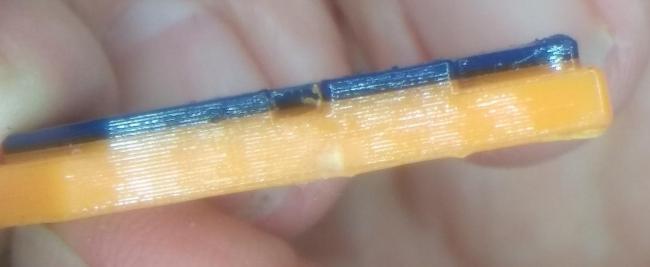 Acetone e ABSCarsco ha risposto a Carsco nella discussione Problemi generici o di qualità di stampa Questo e' lo stesso pezzo trattato solo con carta 180 a secco e poi due tre mani rapide di trasparente opaco. 30 secondi fra mano e mano: e' acrilico e asciuga in un lampo. VID_20201119_161100-1.mp4 Gli unici segni che si vedono sono del riempimenrto sottostante perche' questo ABS e' poco coprente. Un altro strato non avrebbe fatto male. Faccio notare che, lente alla mano, va via esattamente meta' del layer superiore. Quindi se si prevedono 3 layer, meglio farne 4. N.B.: questa e' una versione di test in cui dopo il bianco di base e il nero per due layer (altre scritte sul pezzo) ho dato un ulteriore layer di bianco per far risaltare meglio i due layer di blu successivi. Non e' servito a molto: meglio 3 strati di blu direttamente oppure uno di bianco e sempre 3 di blu poi, ma il pezzo viene troppo alto. Ma questo esula dalla prova del carteggio.