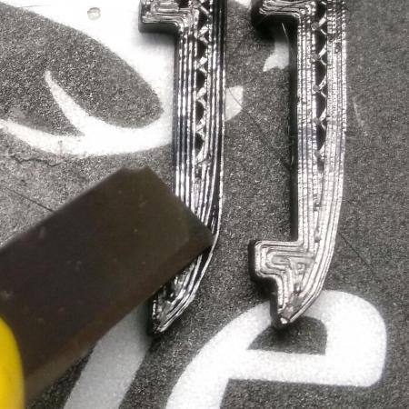 23. 🙂 Cmq si', in entrambi i casi lo spessore e' 1mm perfetto. Non ho mai avuto problemi in questo senso, anzi, sono sempre molto preciso. Sono stato il primo ad andare contro la soluzione di settare (inutilmente) gli step/mm come si faceva fino all'anno scorso, e infatti Piraz poi ha corretto il tiro facendo un altro video in cui smentisce se stesso :), ma questa e' un'altra storia. Pero', a parte il problema di adesione che ho avuto e che forse ho identificato, questo stesso problema si presenta in altri casi. La guancetta di cui parlo ha una forma a cuneo, stretto e affusolato, e le pareti non sono parallele fra di loro, quindi lo spessore cambia man mano e non c'e' una misura multipla della riga. Insomma, un gran casotto... Faro' prove e le postero'.