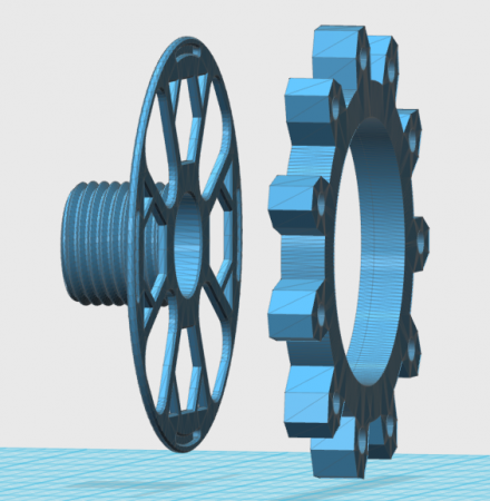 4. Ciao! Smanettando nei mesi stampando parecchie cose, ho avuto una piccola idea per riutilizzare i telai delle bobine vuote In breve, vorrei riutilizzare le parti dove viene arrotolato il filamento per costruire una decorazione muraria simil-steampunk, stampando dei supporti cilindrici da attaccare al muro e degli ingranaggi decorati leggermente più grandi del raggio della parte concentrica, attaccarli, e costruire una sorta di meccanismo azionato a manovella. Non sarebbe di nessuna utilità, se non puramente decorativo per riempire una parete vuota in mezzo a una libreria Come dimostrazione, vi metto qui una parte di progetto che sto disegnando. In pratica, taglio la bobina a metà nel tubo centrale ottenendo così due supporti. Poi stampo un cuscinetto (o ne prendo uno di legno, è uguale) da inserire nel buco centrale da fissare al muro, ma di un mm più piccolo per permettere alla bobina tagliata di slittare. Sulla parte piatta, fisso tramite viti e trapano un ingranaggio con un raggio pari ad esso, ma con i denti che fuoriescono, in modo tale che si crei il movimento meccanico. Per rendere tutto più leggero, utilizzerei un infill del 15% in alcuni, mentre altri, stampati a shell e divisi a metà, utilizzerei un riempimento fatto con materiale di scarto come fogli di giornale e colla per bricolage, la stessa che si usa nelle scuole materne per costruire, in modo da dare loro un peso maggiore. La prima bobina, invece avrà una manovella, opportunamente scalata per essere usata con tutta la mano fungerà da "start point" che ne pensate? . ============ IDEA 2 Questo invece è un modello che mi hanno commissionato, e siccome è la prima statuetta che mi viene richiesta, sono un pò indeciso su come impostare la stampa. Vorrei fare un infill che spazia tra il 25 e il 50% per renderla dura e resistente, ma vorrei anche sapere quali siano le impostazioni migliori per il supporto. Pensavo alle impostazioni riportate in foto. Però voi, sicuramente più esperti di me saprete cosa consigliarmi. Grazie in anticipo!