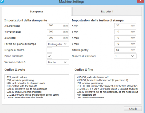 Test di stampa: consigliMattia Soppelsa ha risposto a Mattia Soppelsa nella discussione Problemi generici o di qualità di stampa aggiornamento: in un gruppo fb ho trovato chi mi ha consigliato repetier host e mi ha dato le impostazioni della mia stampante. che allego. Ho settato tutto ma questo è il risultato. Dove sto sbagliando?