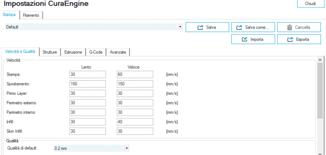 Ugelli differenti: impostazioniMattia Soppelsa ha pubblicato una discussione in Software di slicing, firmware e GCode Heilà, sono tornato dopo un paio di mesi dove ho stampato veramente tante belle cosette. Purtroppo l'ugello 0.3 in dotazione alla mia i3 pro w è letteralmente morto (non è servito nemmeno pulirlo con gli attrezzi dedicati) e ho dovuto sostituirlo. Allora, per comodità ho comprato un pacchetto hot end assieme a una decina di gole e ugelli da 0.4. A parte le gole, leggermente più corte dell'originale, ho montato tutto il nuovo pacchetto, visto che l'hot end era già di suo provvisto di tutto già attaccato. Agli inizi, su questo forum mi erano stati passati degli screenshot per sistemare le impostazioni, e ingenuamente le ho testate assieme alle nuove componenti, ma l'ugello da 0.4 tende a trascinarsi tutto facendo un casino. Devo cambiare le impostazioni su repetier host su cura? Chi potrebbe passarmele?