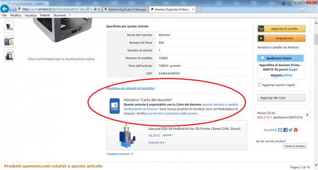 Budget .... io sono un docente di scuola superiore è volevo destinare il "buono docenti" per l'acquisto di una stampante 3D quindi diciamo che ho a disposizione 500 euro (e potrei di mio aggiungerci ancora un paio di centinaia di euro portando la cifra a 700 euro), è però necessario per me acquistare in italia (Amazon compreso). La ricerca del venditore però verra dopo, perchè per me è prioritario "centrare" marca e modello.