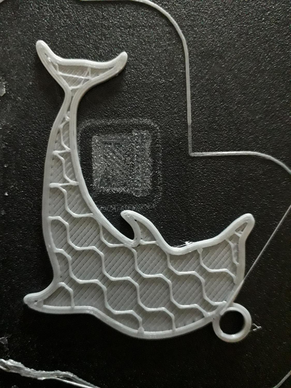 Ho fatto lo slicer e stampato il delfino.... a me non da nessun problema.. ( vedi le foto ) però mi è venuta in mente una prova che puoi fare... quando lo kmposti nello slicer puoi ruotarlo? In modche che adesso il punto dove ti fa il difetto è sull asse X diciamo, se lo ruoti e lo metti sull asse Y questo punto poi provi a rimandarlo in stampa.. se è un problema di slicing dovresti trovarti lo stesso essore anche cambiando posizione dell oggetto,se invece dovesse fare questo vuoto in un punto diverso del pezzo ma dove prima di ruotarlo c era questa piccola pinna allora potrebbe essere un problema meccanico?