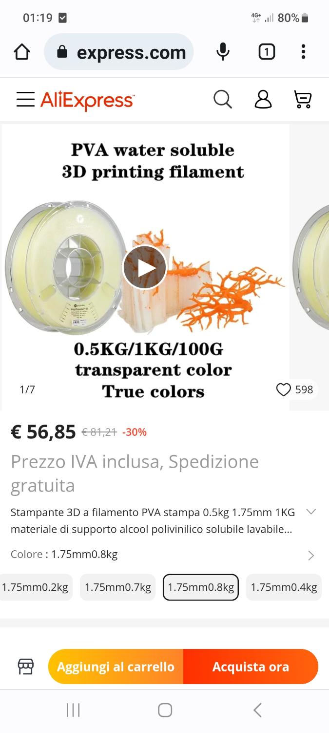 si ma x chi deve stampare qualcosa di tanto in tanto non ha senso spendere 350 € ,ma magari si può creare un gruppo di acquisto e si ripartisce la spesa... vediamo, per ora proverò ad acquistarne una quantità esigua tanto per fare qualche test con la stampante ordinaria,e vedere se i layer aderiscano correttamente tra pla e pva,ho letto che ci siano problemi di adesione ,intasamento di ugelli,ecc con il pva.. se non mi soddisfa non affronto spese per ora ne di filamento e ne tantomeno di stampanti a doppia estrusione...🤷🏻♂️