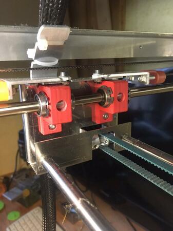 Concordo con la riflessione di michele79 sull'asse X che sarà oggetto della prossima modifica. Io ho stabilizzato l'asse Y , nel modo in cui si vede nelle foto: eliminando una trasmissione in più dal motore all'albero, in modo da eliminare quanto più possibile fonti di backlash. inoltre le cinghie originali hanno l'anima in acciaio, anziché in vetro, e secondo me sono meno resistenti alla messa in tensione. -