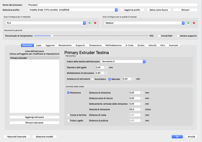 Avrò stampato 20 kg di filo con la ender 3 e simplify e ho sempre ottenuto buoni risultati , la cosa strana è che stampa davvero bene con Cura e Prusa non capisco perchè con gli stessi parametri di temp e velocità mi crea quella roba . La cosa la noto negli spigoli 90 gradi se stampo altre forme va bene . -