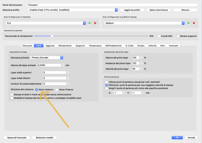 Buonasera a tutti scrivo perché sono al ventesimo cubetto che stampo ma non ne vengo a capo tento di spiegare: Ho una Ender 3 Pro con Marlin 1.9.1. con scheda silent 1.1.5 che verrà sostituita a breve con una 32bit. Partiamo dicendo che la meccanica cinghie e tutto il resto è regolato a modo, Step estrusore regolato , step x-y-z regolati , flusso regolato . Le prove sono state innumerevoli regolando anche jerk e accelerazioni fino a 20 per x-y e 1500 di accelerazioni, ma di base stampo con i valori standard della Ender 3 . Ho stampato sia stl scaricati che cubetti fatti da me con fusion ma la cosa non cambia. Come vedete dalla prima immagine fatta con simplify è uno schifino ho tentato dai 190 ai 225 gradi , tutte le retrazioni possibili ed anche velocità dai 30 ai 60 ma nulla quelle sbordature rimangono sempre ovviamente in alcuni casi diminuiscono o peggiorano ma mai del tutto assenti. Filo PLA Plus Sunlu L'unico miglioramento che ho ottenuto è togliendo questa funzione come vedete in foto. Ecco lo stesso cubetto fatto con PrusaSlicer ultimo aggiornamento con temp 210 piatto 60 e velocità 60mm sec e retrazione 5-50 insomma tutto standard , non è perfetta ma siamo su un'altro pianeta , anche con Cura mi vengono bene . Visto che Simplify 3d mi piace parecchio specialmente per i supporti vorrei sapere che diamine di segreto mistico c'è in questa storia, credetemi le ho provate tutte ho anche piallato il programma e rifatto tutto da capo ma nulla mi vengono sempre peggio rispetto agli altri. Se qualcuno ha una vaga idea mi farebbe piacere. Dimenticavo ho anche notato che la stampa in simplify parte sempre dal perimetro esterno nonostante sia taggato di andare verso l'esterno Ho tentanto anche con Distanza di costa a 0,2 e pulisci ugello ma poco cambia 😞 -