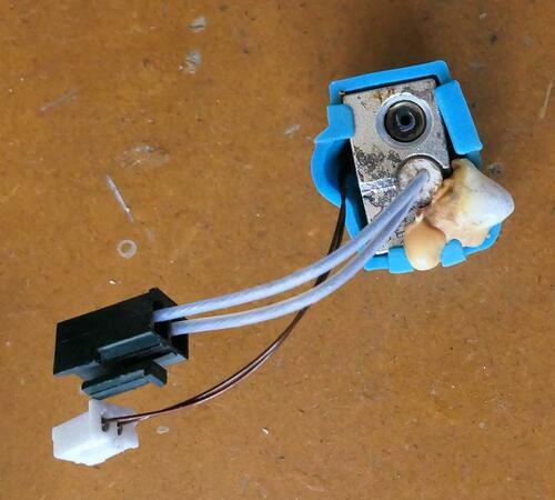 Si infatti l'ho smontato e guarda che ho trocato: Ho cambiato tutto il blocchetto e guarda il risultato: Ma mi chiedo: d'accordo che si può sporcare ma qui c'è una vera e propria fuoriuscita di pla!? Si deve essere formato un spazio tra il tubicino di teflon e l'ugello? Come si può evitare che si formi? Grazie.