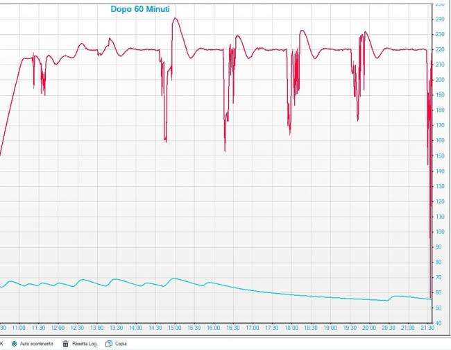 21. Vi sono mancato coi miei problemi? hahaahahahaha Ho la stampante che mi va in protezione perchè la temperatura dell'hotend sale e scende (temperatura regolata a 220°), ho già cambiato cartuccia e termistore ma niente continua a farmi incavolare. Allego screen del grafico della temperatura visto che ce l'avevo sotto controllo (3 volte consecutive dopo 10 ore di stampa). L'hotend è collegato direttamente alla scheda madre. Cosa può essere? Grazie