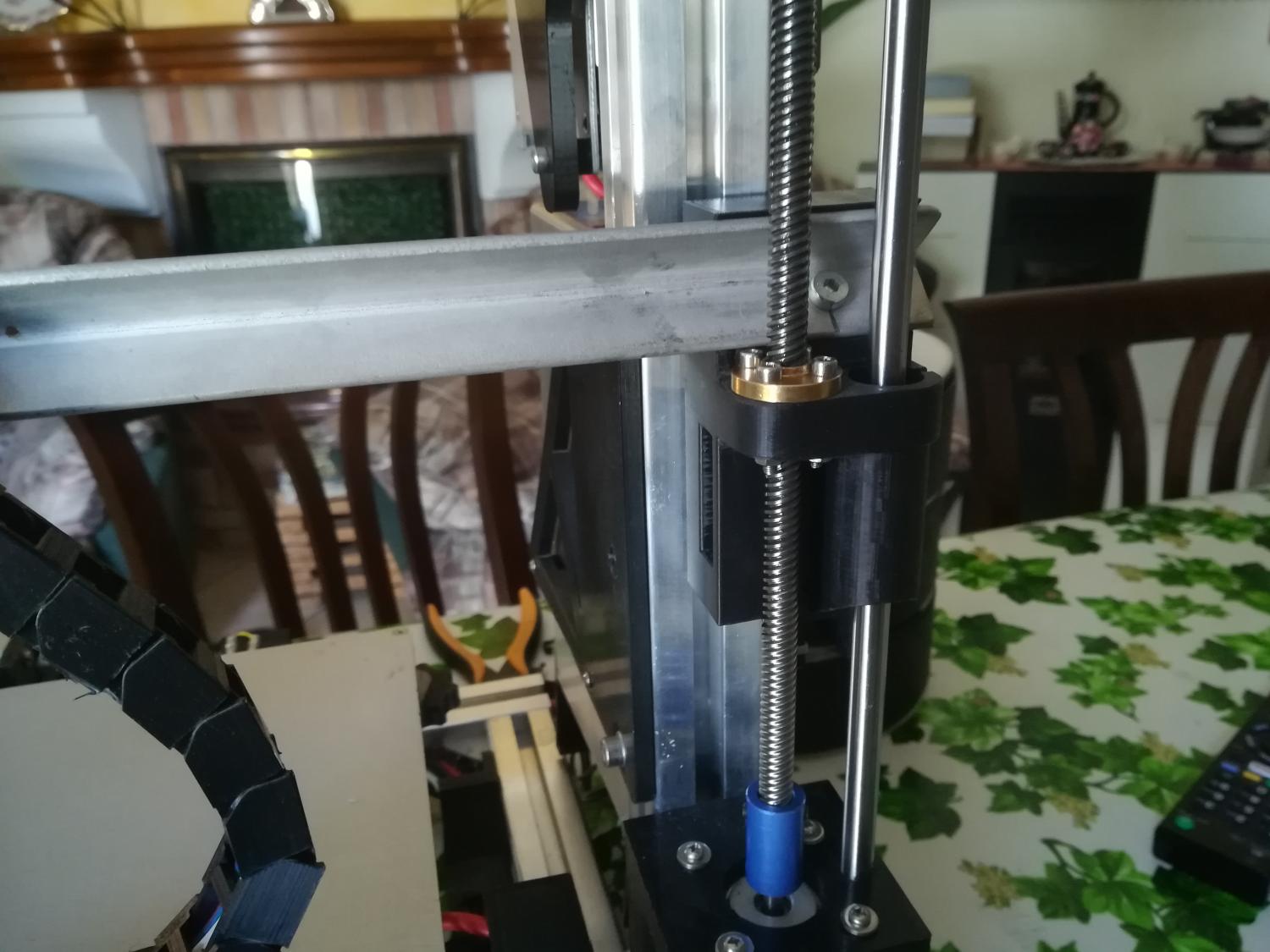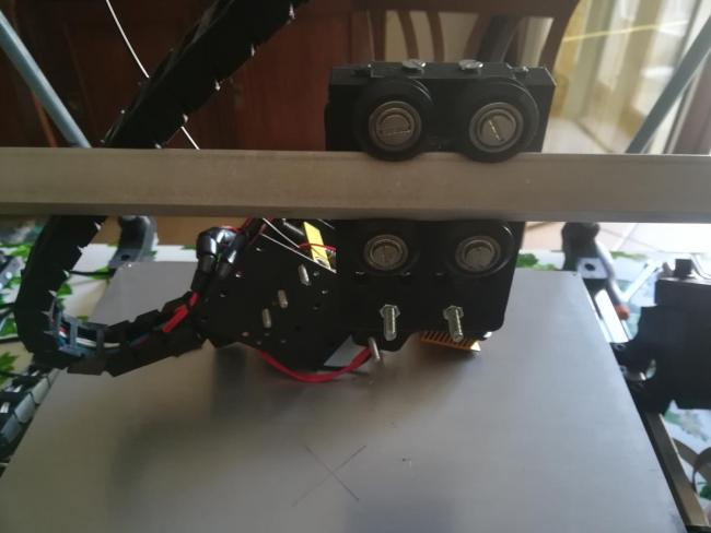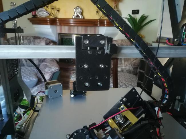 Nessuna oscillazione, ho fatto molto più spesso il supporto coi cuscinetti, ho dovuto adattare il tutto anche alla distanza che ho dalla barra in alluminio e non ho potuto sistemarlo più giù, e poi questo è anche provvisorio, il prossimo lavoretto sarà togliere del tutto questo estrusore e mettere il bmg della trianglelab