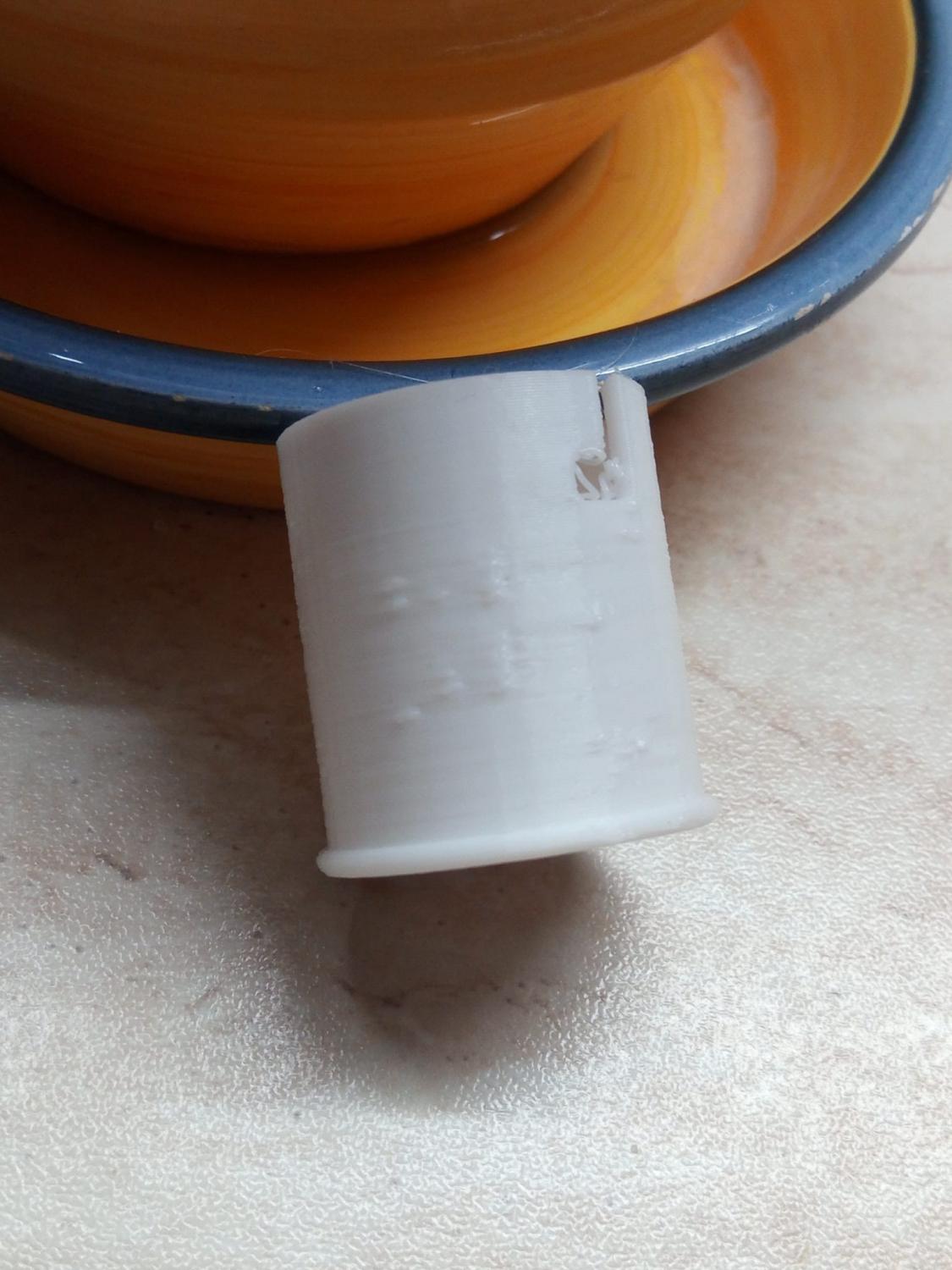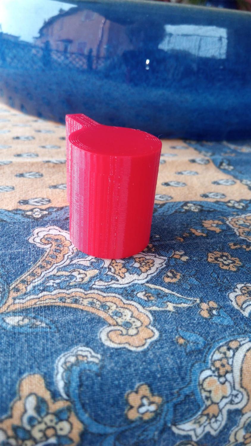 Stamane ho stampato i tappi, e potete vederli in foto. In pratica ecco i parametri usati: 220° ugello, Bed 0°, velocità 50 mm/s , iniziale 35 mm/s , retrazione 40 mm/s , jerk spostamenti 30 mm/s Quindi... a parte temperatura e bed... valori simili al Pla... mi sembra incredibile ma è cosi... Ora provo a stampare di nuovo la maschera. -