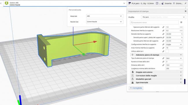Grazie Basilietto, però non sono sicuro di aver capito quello che mi suggerisci. Per meglio illustrare il mio problema posto uno screenshot dove si può vedere che nonostante abbia scelto un generic abs per questo oggetto, nella finestra a destra continuano ad apparirmi le impostazioni del mio pla pers. Sono certo che mi sfugge qualche passaggio. Grazie Gianni -