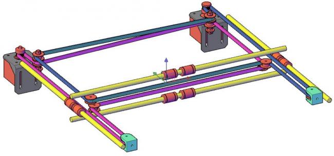 Il principio di funzionamento è questo. http://corexy.com/reference.png Nella mia però ho spostato i motori dietro ed ho aggiunto più pulegge per poter realizzare un sistea di regolazione della tensione delle cinghie. -