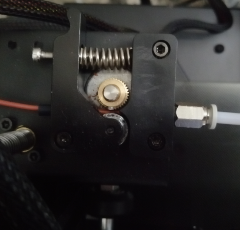 Per ingranaggio intendi la ruota dentata che carica il filo dalla bobina al tubo PTFE? -