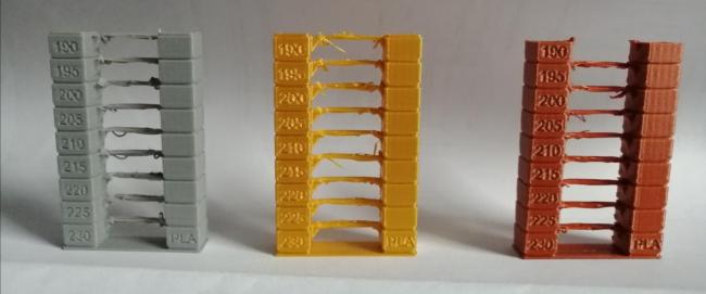 Ciao a tutti, è da un pò che la temp tower che uso ad ogni cambio di bobina mi da risultati che non so interpretare. Vi posto qui 3 temp tower di materiali diversi (tutti però stessa marca) . Come vedete non c'è un bridge (un collegamento tra una torre e l'altra) che venga corretto (sono tutti più o meno sfilacciati) mentre le due torri verticali, per quello che sono i miei standard, le trovo buone. Vi viene in mente quale parametro andare a verificare? Grazie in anticipo come al solito. 😉 -