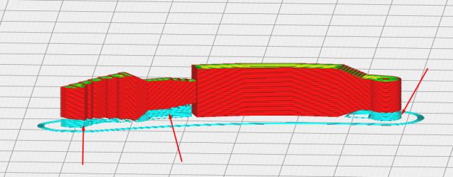 Approfitto del pezzo che ho stampato ieri per girarvi un problemino che sto cercando di risolvere da un pò. Questo è l'esempio: Il pezzo è piccolo, parliamo complessivamente di 5/7 cm di lunghezza massima. La parte centrale poggia sul piatto mentre le frecce rosse indicando i punti che necessitano di supporti. La domanda che volevo farvi è questa: - sapete se esiste il modo di stampare TUTTO il pezzo partendo da una zeta che sia maggiore di 0? Perchè, ovviamente, di default se provo ad alzare tutto il pezzo, CURA, lo "sbatte" a terra... 🙂 Quello che volevo fare è impostare tutto il pezzo ad una altezza tipo 10mm in modo che tutta la parte sottostante fosse supportata cosi che poi, a stampa terminata, i supporti possano legare meglio tra loro ed essere molto più facilmente rimovibili (al momento, essendo il pezzo particolarmente piccolo, qualsiasi impostazione dei supporti è tale o da non funzionare o da essere molto difficilmente rimovibile). Il caso esposto è solamente un esempio per la domanda quindi "girare" il pezzo non è una soluzione 🙂 -