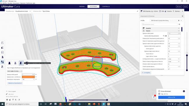 22. Innanzi tutti grazie della risposte. La mia indole smanettona mi ha fatto fare una prova (magari avrei potuto farla anche prima di fare la domanda ma vabè 😅) , e direi che la prova è riuscita perfettamente! Ho creato su Fusion un cilindro, e l'ho importato su Cura insieme al manico che avevo modellato, l'ho sovrapposto al manico e poi ho dato al cilindro la proprietà "Modificare le impostazioni per le sovrapposizioni", a questo punto il cilindro è diventato esattamente come un volume modificatore di Cura, potendo così assegnargli tutte le caratteristiche che vogliamo! Vedere per credere! 😜