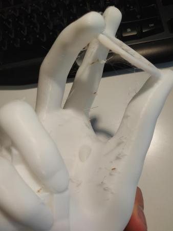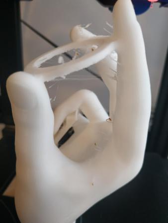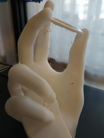 3. Ciao a tutti, ho appena finito di stampare la mia prima stampa "lunga", 20 ore. Nel complesso sono soddisfatto, e considerando che voglio carteggiare e poi rivestire con resina gli errori che vi mostrerò penso scompaiano del tutto, ad ogni modo vorrei capire cosa è successo. Ecco qualche foto: Come potete vedere il difetto più grande sono questi vermicelli usciti fuori, alcuni dei quali con dei pezzi marroni (sbruciacchiati?). Praticamente la totalità dei vermicelli è uscita fuori nella metà alta della stampa, nella metà bassa nessun problema. Una cosa "strana" è stata che nella parte finale della stampa la temperatura dell'hotend era 220° mentre io sono sicuro di aver impostato 215°, temperatura che uso sempre con questo PLA+ Sunlu e con la quale mi trovo sempre bene. Anche la retrazione, 2.5mm a 25mm/sec è quella che uso sempre. Avete idea di cosa posso essere?? Dopodichè l'anello stretto tra le dita è venuto un po' maluccio nella parte inferiore, ma considerando che l'ho stampato senza supporti ci sta, e non me ne preoccuperei tanto. Infine l'ultimo difetto "rilevante" sono queste cuciture: sono sparse qui e li per tutta la stampa, nulla di particolarmente fastidioso ma se potessi eliminarle non sarebbe male. Nel complesso sono piuttosto soddisfatto, il resto della stampa è venuta benone, ma soprattutto i vermicelli mi preoccupano, ancheperchè ho osservato la stampa anche per lunghi tratti e quando osservavo non li ha fatti!! (si sarà spaventata) 🤣 Grazie!!