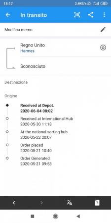 18. Guarda, in teoria doveva essere 4-7gg, spedita da UK con spedizione in 24h, le 24 ore per spedirla le hanno rispettate, il tempo di consegna decisamente no, ti allego il tracking...infatti sto cominciando a stranirmi...