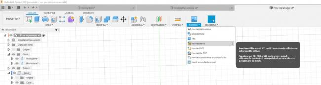 5. In alto a destra su Inserisci e poi Inserisci Mesh per importare l'STL...😉