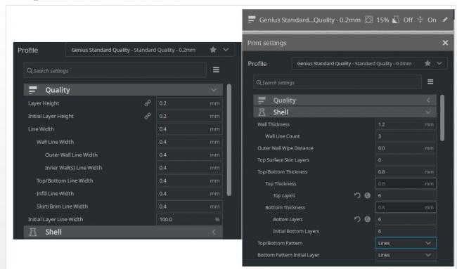 24. ho ripreso la problematica; il bordino in questione è di largheza 2 mm, multiplo di 0.4 . Anche riducendolo a 1.6 il risultato è il medesimo. Presumo a questo punto che ci sia qualche errore di impostazione di Cura o qualche altro dettaglio che disconosco. Questi i settaggi di Cura che utilizzo, sicuramente c'è da migliorare ma non saprei cosa..... .....ho provato a diminuire/aumentare i perimetri, il top/bottom, ma penso c'entri poco. L'ideale sarebbe che lo slicer "semplicemente" mi computi il perimetro centrale come un unico cerchio e non come fa adesso. Per completezza ho anche provato a ruotare di 90° il pezzo, ma il difetto compare sempre negli stessi punti (ovviamente ruotato). Se qualcuno volesse provare a rifare l'STL, è una medaglietta da 50mm di diametro e 5mm di spessore; il bordino è di 2mm di larghezza e 1mm di altezza. Il bordo non è stato estruso ma è stata tagliata la parte interna per la profondità di 1mm ed estruse le scritte in seguito. Lo allego anche in STEPUma_Park_KEYRING.STEP