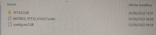 Ho caricato questo qui https://github.com/bigtreetech/BIGTREETECH-TouchScreenFirmware/blob/master/Copy to SD Card root directory to update/BIGTREE_TFT35_V3.0.27.x.bin L'ho rifatto 2 volte ed è uscito sempre così 🤔 -