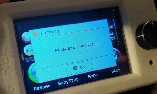 Continua a darmi questo avviso 🙄 Poi mette in pausa la stampa e il nozzle va nel suo parcheggio 😏 se poi faccio continua, 2 secondi dopo rispunta quel messaggio e fa così in loop.. Ho provato da lcd a mettere off su "emulated M600" che magari partiva quel comando ma non è cambiato nulla, dalla stessa sezione era disabilitato "start gcode" e "end gcode" che ho abilitato, ma anche in questo caso niente 🤷 Pomeriggio controllo tutto quello che è attivo o meno nel fw dell'LCD, ma ho qualche dubbio che sia lì il problema -