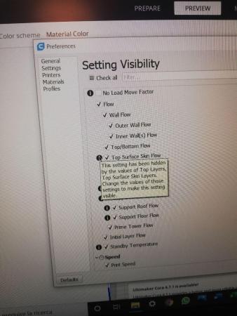 top surface flowLeo683 ha risposto a Leo683 nella discussione Software di slicing, firmware e GCode ma questo l'ho capito hahaha, mi dice di cambiare i valori di quei parametri ma anche cambiandoli mi rimane nascosta custom vuol dire personalizzata in inglese, non ho capito cosa intendi😄 ho provato a mettere la visione dei parametri su "all" ma la nascondeva comunque