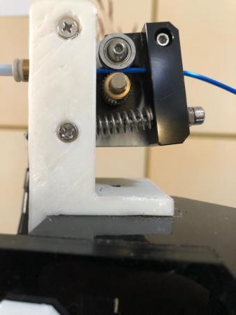 il motore è posto in alto a dx del telaio della stampante, il filamento passa dal blocco estrusore e finisce nel e3dv6 attraverso il tubicino in teflon, se riesco a trovare una foto sul cell la posto.