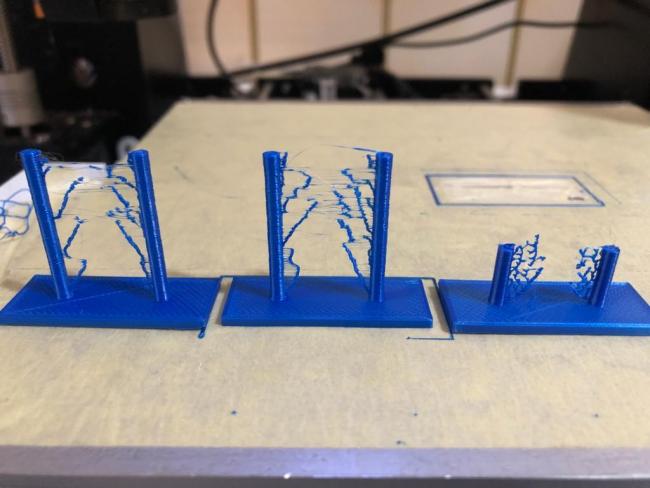 Bowden e3dv6 (clone) stampa a 30mms temperatura 195 gradi distanza di ritrazione 5.6mm( oltre blocca l’estrusione) e 80mms di velocitá di ritrazione, estrusione al 100% ( provato ad abbassare il valore ma non mi ha risolto nulla) ugello da 0,4 stampa effettuata a 0,12