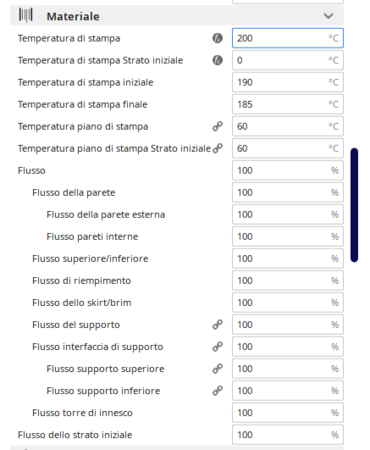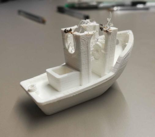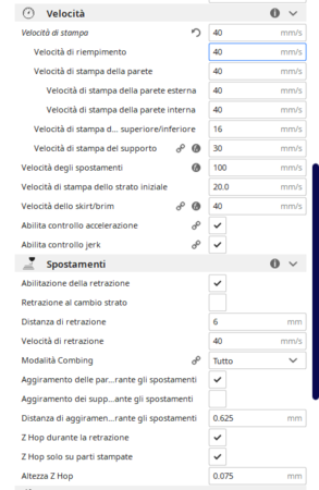 Ora sto stampando pla aumentando la temperatura a 220 e sembra funzionare. Con la retrazione a distanza 4,5 mm e velocità 60 mm/s sono aumentati i tipici filamenti appesi. Ora sto provando con 4,5 e 80 mm/s. Appena possibile eseguo lo smontaggio e taglio del tubo in teflon -