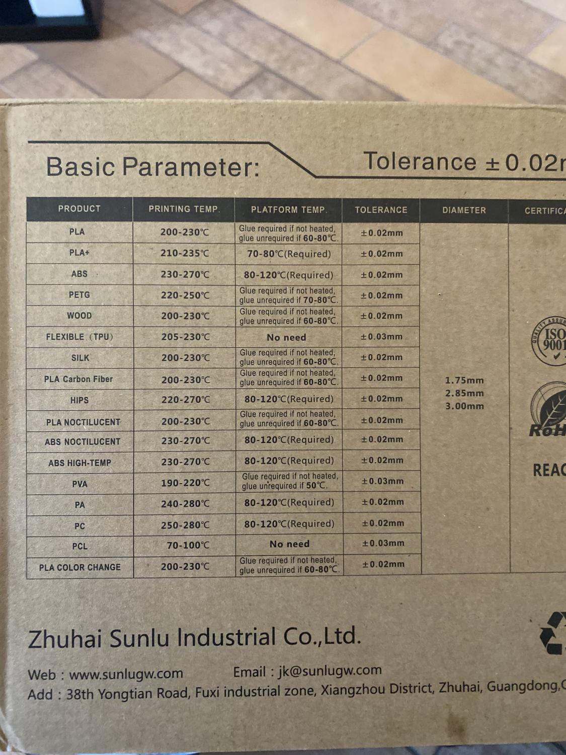 Ciao ti allego la scheda del pla, ho provato la temp tower e tolto il bridge come temperatura mi sembrava quella uscita meglio... ho provato anche a temperatura più bassa ma non cambia. è PLA+ Ora sta stampando da Dio, perfetto, ma ogni tanto da comunque qualche colpetto, di tac (fa ridere il logo di Lv ma lo uso come prova) -