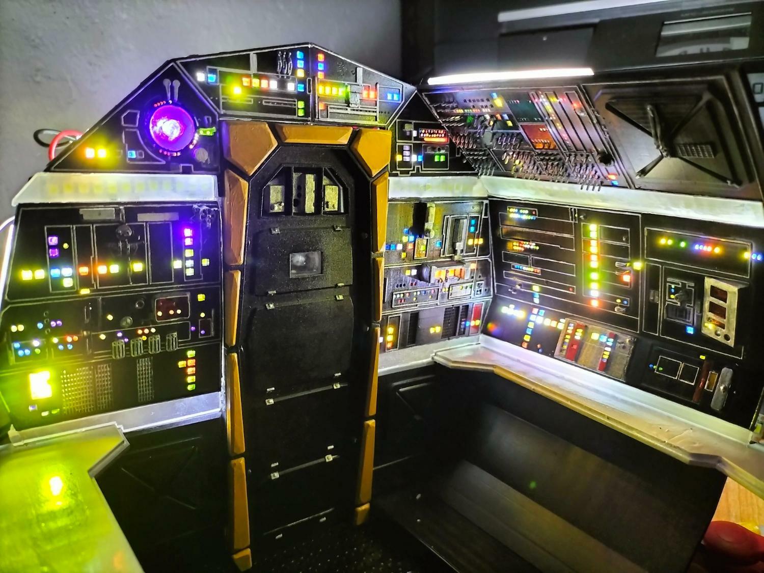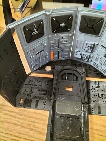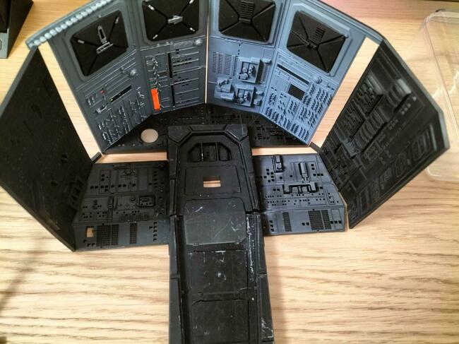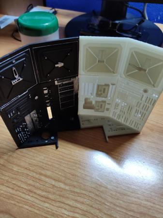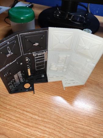 Eccomi ancora a voi....Sento il bisogno di una stampante più grande... Ho infatti qualche problema con la giunzione dei pezzi che soffrono in fase di cura di una inevitabile contrazione...l'ho calcolata a dovere consentendomi margini di errore ma se potessi stampare in una sola volta sarebbe una altra cosa. Poi accetto suggerimenti per la tenuta assieme dei pezzi. Voi direte: colla cianoacrilica. Io vi dico NO, perchè cristallizza e alla fine nel tentativo di collimare i pezzi compensando i decimi che mancano si sbriciola. Lideale sarebbe salkdarli con la resina ed esporili a UV, cosa che ho fatto con i pezzi piccoli fino a che stavano nella macchina di cura (ho una Elegoo mercury Plus). Al momento uso nastro biadesivo acrilico e ho dei buoni risultati ma accetto consigli. Adesso un po di foto. Ho preso anche dei led RGB in rotazione dei colori automatica e dei led lampeggianti blu e rossi...vi farà vedere qualche cosa piu avanti... per il momento è tutto. Fatemi sapere cosa ne pensate. Ciao a tutti -