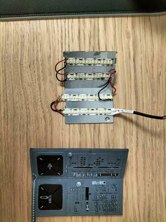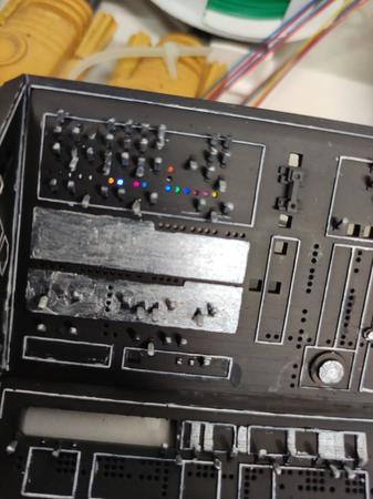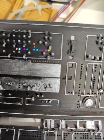 sono scomparso per un po a causa di lavoro, salute e amenità varie che mi hanno costretto a mettere da parte il mio hobby. Ma sono tornato....non che importava a qualcuno 🙂 Allora, pubblico 4 foto perchè ho appena stampato dei pezzi trasparenti che vanno ad incastrarsi perfettamente negli alloggiamenti delle varie spie. Poi con i colori per vetro li ho colorati ed infine ho messo delle strisce LED su un supporto in alluminio (aumenta il peso ma dissipa il calore dei led che è una bellezza.....Si vi va ditemi cosa ne pensate. Non ho abbandonato neppure l'idea delle fibre ottiche ma le userò solo in alcuni casi e non voglio complicarmi troppo la vita.... ok, Siccome ho anche proseguito con il lavoro di stampa, vi mando altre foto. La penna che vedete è per darvi una idea della dimensione della cabina...... -