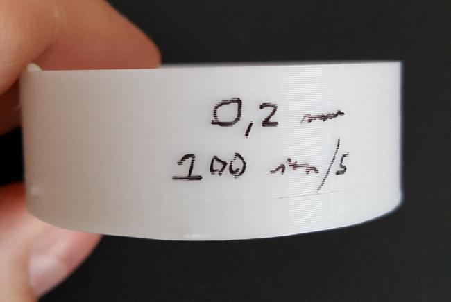 Allora, ho fatto un cubo con 1 perimetro a 20 mm/s, lo spessore è venuto circa 0.9 mm invece che 0.8 mm (dimensione nozzle, che coincide con line width impostato). Prima di saltare a conclusioni però, continuate a leggere. Per dimostrare che non è un problema di limite dell'estrusore/hotend ho stampato un cilindro in vase mode, per non avere interruzioni nell'estrusione, a 100 mm/s. L'ho fatto prima con layer height 0.2 mm e poi 0.4 mm. Nel test a 0.2 mm vedrete che c'è un balocco di plastica sulla sinistra e sottoestrusione in quel layer. Non fateci caso, ho inavvertitamente mandato in stallo la stampa da Cura aprendo un menù. In sostanza entrambi i test sono perfetti. Lo spessore del wall è venuto proprio 0.8 mm. E il secondo test fidatevi che viaggiava bello spedito! Secondo i miei calcoli sono 32 mm³/s di estrusione. Quindi per me l'hotend è perfettamente in grado stampare i campioni del post precedente. Per quanto riguarda la calibrazione dello spessore del wall, diciamo che rientra in un 10%. Si può mettere a punto a seconda degli altri parametri, ma non lo vedo un problema. -